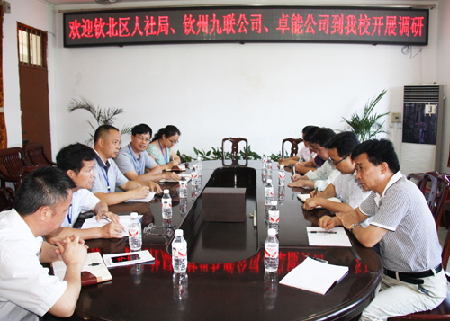 5月21日日下午,钦北区人社区、钦州九联公司、钦州卓能公司相关领导到我校就校企合作和招生就业工作进行座谈和调研。