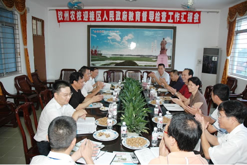 2007年7月19日上午,以自治区人民政府督学、自治区人民政府教育督导团办公室副主任胡治高为组长的自治区教育督导团一行三人在钦州市教育局有关领导的陪同下到我校进行督导检查工作。 此次督查的内容是中等职业学校招生宣传情况、招生成本是否执行自治区的有关规定以及招生中是否存在地方保护行为等。胡治高一行三人首先视察我校园环境及校园建设,对我校所取得的成绩表示赞赏。随后听取校长刘波同志所作的工作汇报。刘校长说,我校的招生宣传做得早,方案具体可行,并且认真贯彻落实自治区教育厅的有关文件精神,坚决不搞有偿招生,严格控制招生成本,取得了一定的成绩,并实事求是地分析当前招生中存在的困难和问题。督导团对我校的做法予以肯定,并表示对反映出来的问题进行认真研究和反馈,以促进我区中职教育的良性发展。