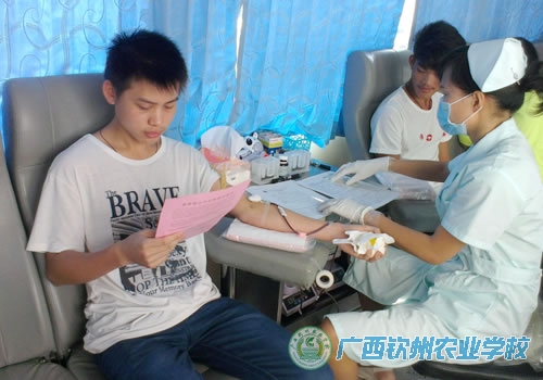 2014年6月14日是第十一个世界献血者日,为宣传无偿献血知识,鼓励更多健康适龄的青年人加入无偿献血行列,当天上午9点钦州市中心血站到我校学生宿舍区开展无偿献血知识咨询及流动采血车采血活动,参与无偿献血的师生以实际行动为公益事业献出一份爱心。
