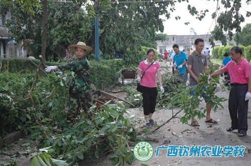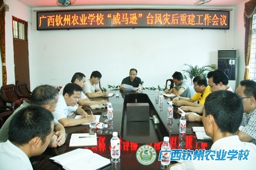 为做好“威马逊”台风灾后维修重建工作,还师生平安、美丽、和谐校园,7月20日,学校启动紧急预案,学校校长、党委书记伍国樑同志在第一时间召集学校办公室、人事科、计财科、总务科、教务科、保卫科、农场等部门负责人召开灾后重建工作会议,研究和部署我校全面抗击台风开展自救的工作。各相关部门汇报了损失情况,与会人员对受损情况进行评估。伍校长在听取相关部门负责人的受灾汇报后,要求相关部门加快维修重建工作,加强校园的安全、清洁、绿化和美化建设,恢复校园生活秩序。