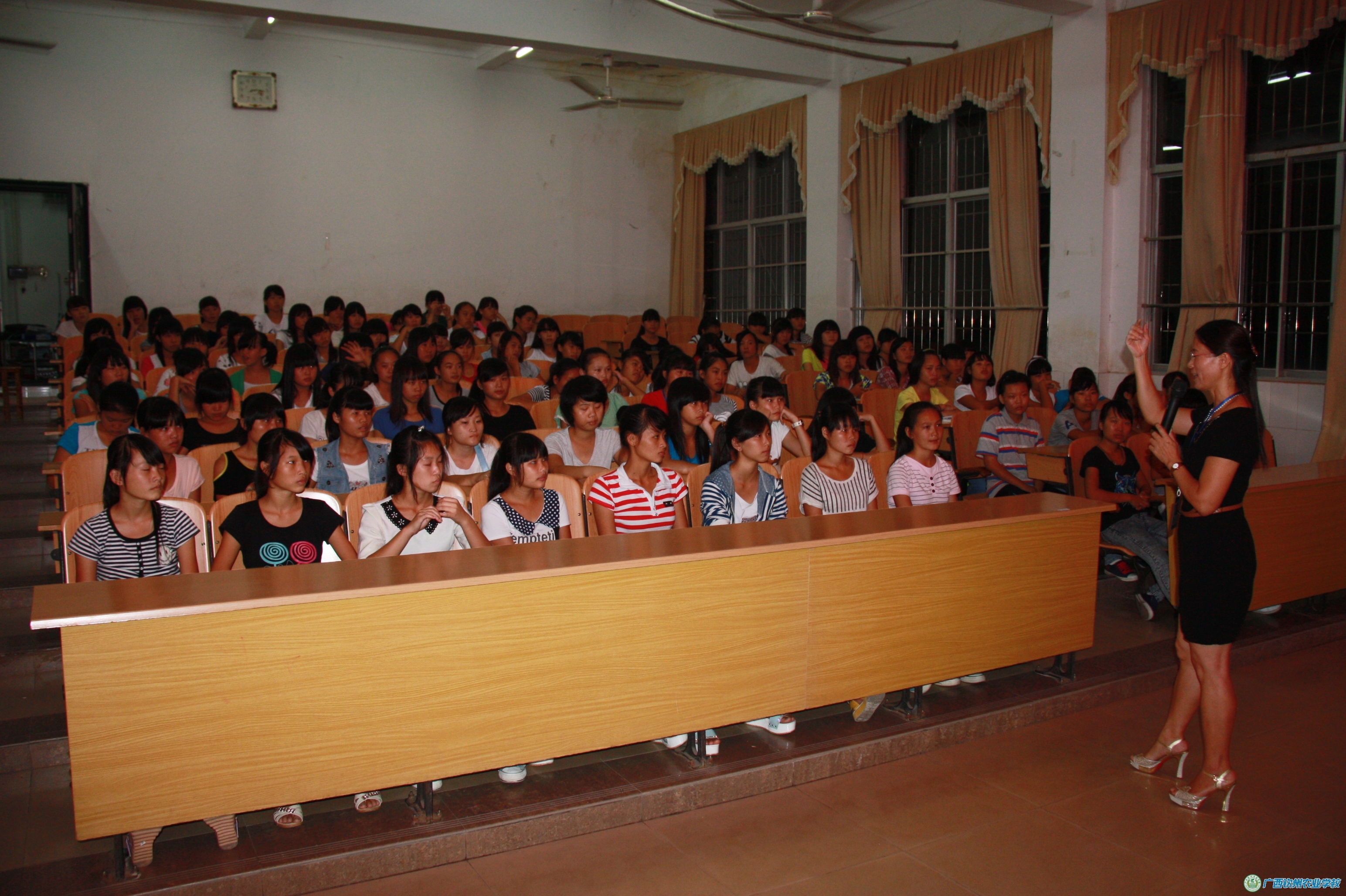 9月23-24日晚上,我校覃一静副校长为2014级全体女生作了用心经营自己的人生—— “我是女生”专题讲座,覃副校长以女性的角度,更是以妈妈一样的关爱和期望,从养成良好的读书习惯、慢慢学会忍耐与宽容、有目的性选择朋友、一定要有自己的特长、开始学会理财、嫁对老公非常重要、好好保护自己的身体等方面娓娓道来,激励女生树立长远目标,引导女生努力将自己成长为一个知性、优雅、有品位的人,让自己过上幸福的人生。