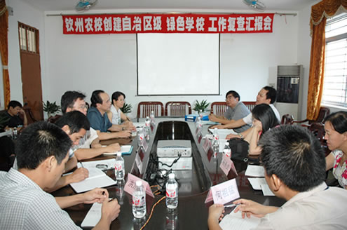 9月29日下午,以自治区人大环境居住委员会办公室副主任周戈为组长、自治区“创绿办”副主任李龙为副组长、自治区环境职教中心孙婷、杨秀贞二位专家为成员的自治区绿色学校复评组一行四人到我校开展复评工作。复评组到校后,在学校领导的陪同下考察了我校的校园环境和有关教学设施,随后听取了刘波校长的工作汇报。复评组的领导、专家对我校2003年成功创建自治区绿色学校以后,继续把“绿色”的理念贯穿于教育教学的各个方面,加大投入整治校园环境,采取各种措施培养学生的“绿色”意识和良好的环保行为所取得的成绩给予高度的评价,并针对我校存在的问题提出了整改意见,希望我校继续努力,再接再厉,争取在2-3年内创建为国家级绿色学校。