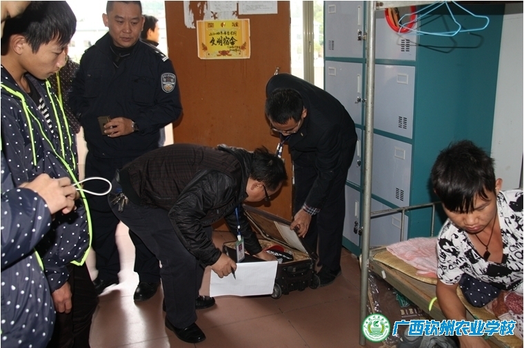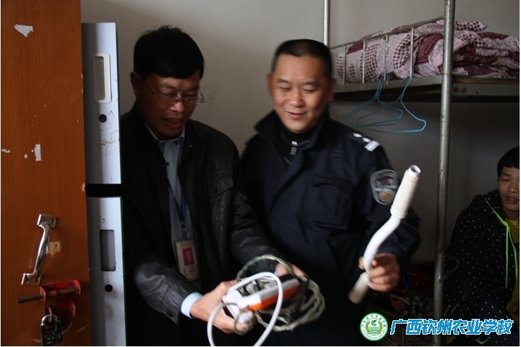 针对我校当前的治安形势,按照学校的工作布置要求,本着“一切为了学生,为了学生的一切”的工作原则,我校始终牢记学生安全无小事,始终把师生的人身安全保卫工作放在首位。2014年12月4日下午4时20分,我校保卫科联合总务科、学生科等部门,成立学生宿舍安全隐患排查工作小组,部门负责人担任工作组组长,组长亲自带领班主任,对我校学生公寓宿舍进行安全隐患大排查,主要排查学生宿舍私拉乱接电源、公物损坏情况、管制刀具、铁棍木棍、大功率电器等。经过现场大排查,收缴危险物品一批,对宿舍存在的安全隐患部位进行记录,提出整改意见建议,有效地消除学生宿舍的安全隐患,有效地震慑学生的违纪行为。另外,钦州市公安局沙埠派出所一直以来非常关心我校学生的安全稳定工作,当天也派出公安干警亲临我校现场指导安全隐患排查工作。我校将以此为契机,定期或者不定期地对学生的学习生活场所进行安全隐患排查,形成长效机制,努力打造平安校园和平安班级,为师生提供良好的育人环境。