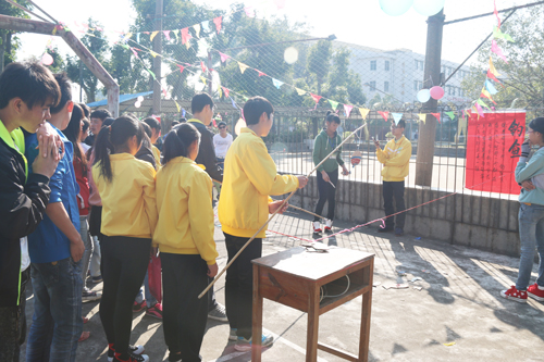 游园活动设定了立定投环、吹蜡烛比赛、猜猜看、摸彩弹、跳绳、转呼啦圈、我来比划你来猜等集创意、智力、趣味为一体的游戏项目24个,吸引了众多同学的积极参与。操场上,一张张洋溢着青春朝气的笑脸,一个个充满青春活力的身影,一阵阵清脆悦耳的笑声给钦农校园增添了无限活力。