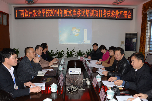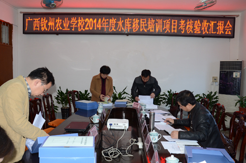 3月12日-13日,以自治区水库移民工作管理局培训处处长覃革为组长的广西水库移民培训项目考核验收组到我校对2014年度水库移民培训项目进行考核验收。