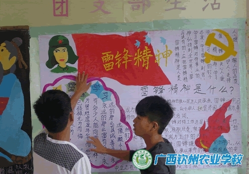 三月份以来,学校团委组织的“弘扬雷锋精神,践行社会主义核心价值观”主题活动在校园内广泛开展,各班支部响应号召,积极组织团员青年开展好人好事活动、出版支部生活板报、撰写广播稿、参与志愿服务,以实际行动践行社会主义核心价值观,推动雷锋精神在我校团员青年中进一步传承和弘扬。