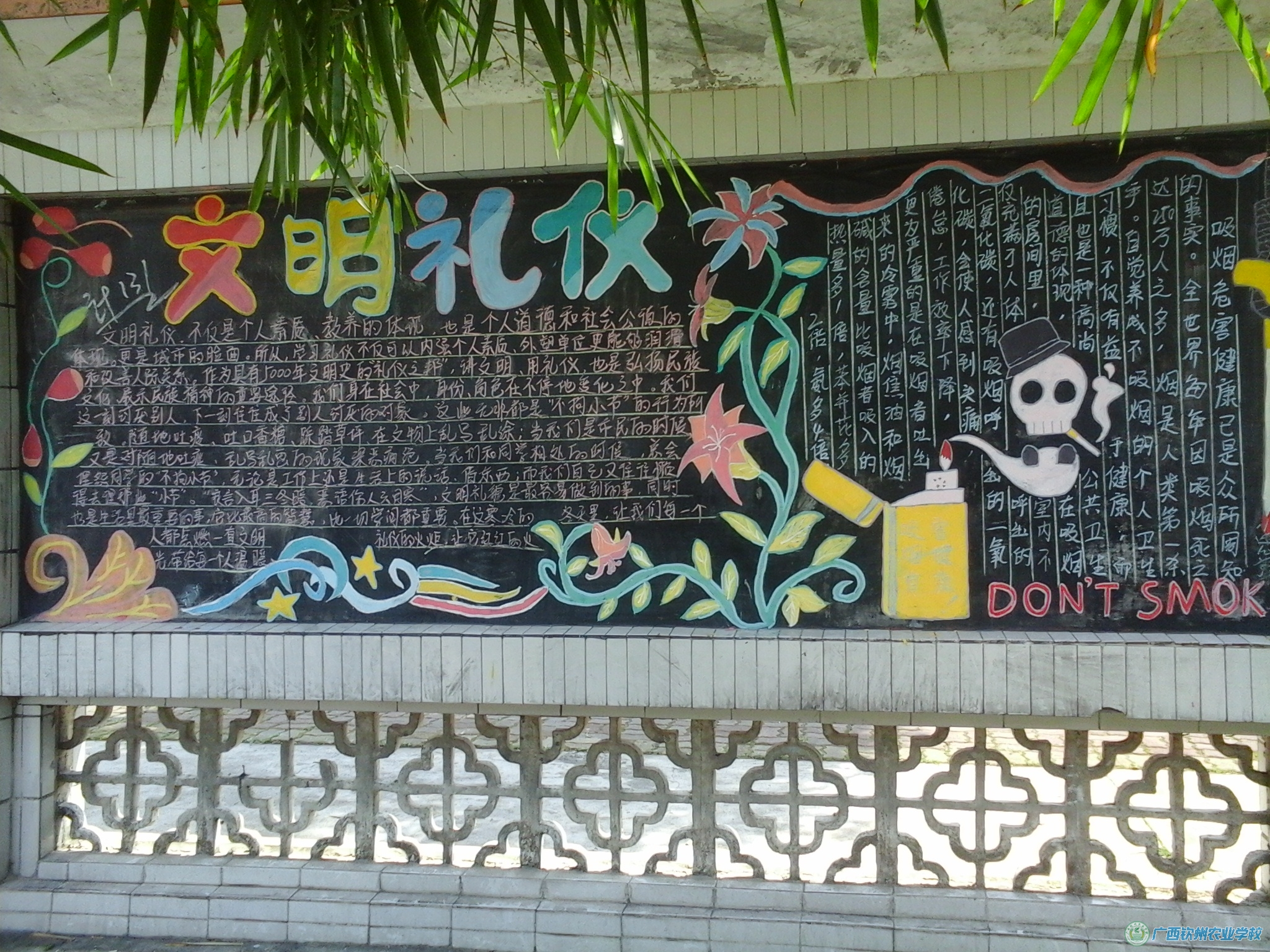 阳春三月,春光无限,我校开展以“讲道德、讲文明、做文明学生”为主题的“文明礼貌月”活动。活动通过主题班会、专题学习、墙报比赛、知识竞赛、演讲比赛等灵活多样的形式组织学生认真学习文明礼仪知识,对全校学生进行了禁烟宣传、仪容仪表整顿。通过“文明礼貌月”活动的开展,培养了学生讲文明、懂礼貌的文明习惯,促进校风、班风、学风的健康发展,推动校园精神文明建设。