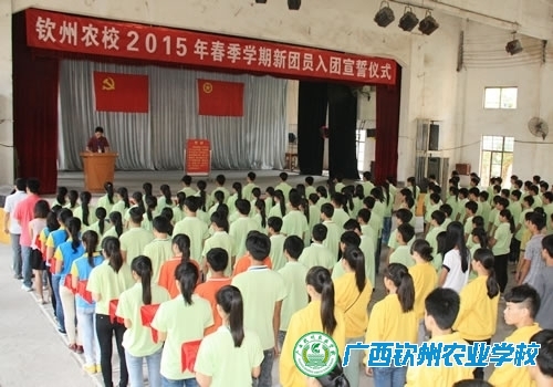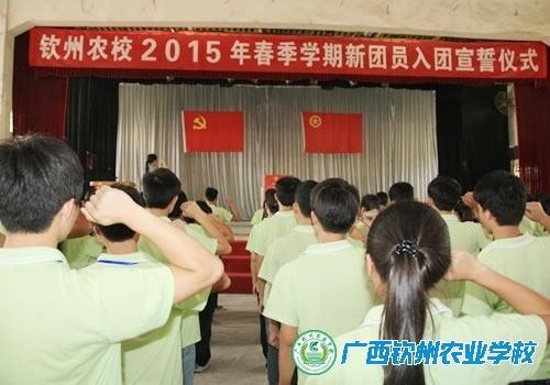 仪式在庄严的国歌声中拉开序幕,首先由团委陈贵才副书记宣读新团员名单,教师代表、老团员为新团员佩戴团徽;接着新团员在团委农晓琼书记的带领下面对鲜艳的团旗,缓缓地举起紧握的右拳,铿锵有力地道出庄重的誓言:“我志愿加入中国共产主义青年团……”同学们用誓词表达了对团组织的向往和为团组织增光添彩的愿望。最后老团员代表发表祝词。宣誓仪式在《光荣啊中国共青团》的歌声中落下帷幕。