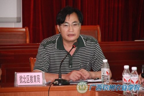 伍国樑校长在会上作讲话。他首先感谢钦北区教育局及各中学近年来对我校工作的大力支持,着重介绍了我校的基本情况、开展校企合作的情况和今年招生工作进展情况,并希望钦北区教育局及各中学继续一如既往地给予我校更多的支持和帮助,共同完成我校今年招生任务。