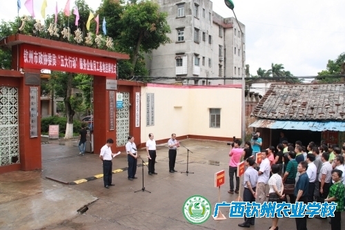 6月25日上午,钦州市政协在广西钦州农业学校举行政协委员“五大行动”协办民生实事暨服务企业用工基地揭牌仪式。市政协常务副主席黄定嵩揭牌,韦全副主席作讲话,陈润良副主席主持。