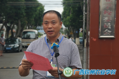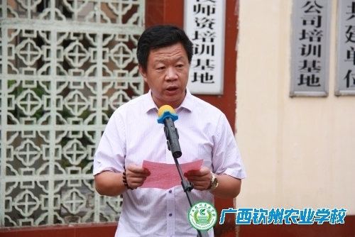我校伍国樑校长致辞。他说,钦州农校把服务钦州“三农”、服务钦州企业、推进钦州经济社会发展作为学校义不容辞的使命。学校将继续推进和完善校企合作机制,结合钦州市目前开展的“三个年”活动,着力把需要工作的人培养成工作需要的人,为钦州企业培养更多实用型、技能型人才。