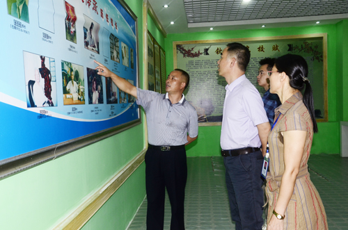 李处长一行到校后,首先参观了我校校史馆,听取我校党委书记、校长伍国樑介绍了学校办学情况和办学成绩。随后,李处长实地考察了我校园林专业教学实训基地、农产品加工专业教学实训基地和设施栽培实训场等的建设情况。在园林专业教学实训基地—钦州市花卉盆景根艺奇石协会,李处长一行饶有兴趣地与基地负责人进行交谈,并对我校涉农专业的建设提出了宝贵的意见。