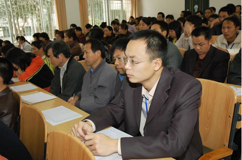 大会现场学校党委书记、校长刘波同志主持大会学校工会陆武昌主席在述职教务科马军科长等23位中层领导干部在大会上进行了述职学校领导与全体教职工听取了工会主席和中层领导干部的述职教职工们在认真听取述职汇报教职工投票评议