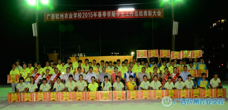 9月9日晚,我校2015年春季学期学生工作总结表彰大会在大操场召开。校长伍国樑、副校长覃一静、副校长覃效敏以及相关科室负责人出席大会。