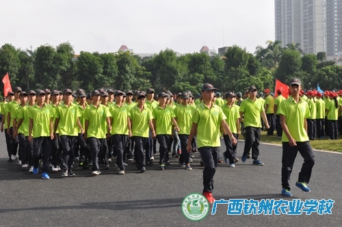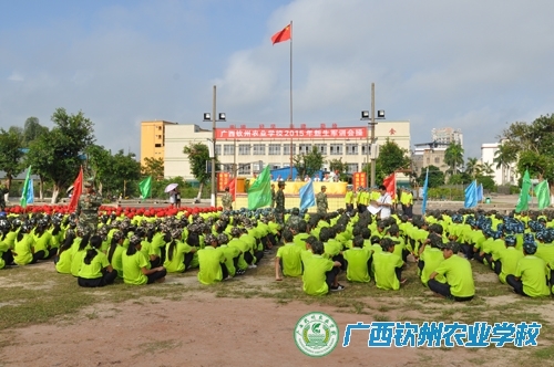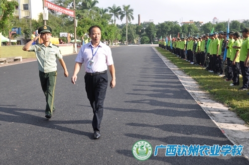 9月26日上午,我校2015级新生军训会操表演在学校大操场举行。伍国樑校长、覃一静副校长、覃效敏副校长、武警钦州第三中队领导出席大会。