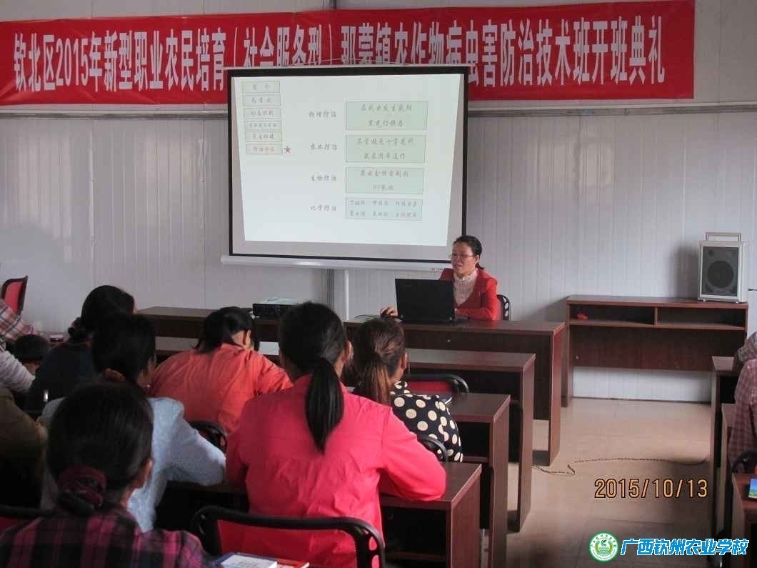 由我校承办的钦北区第一期新型职业农民培育(社会服务型)农作物病虫防治员培训班于10月18日顺利结束。