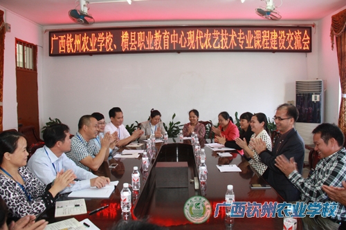 我校伍国樑校长首先对横县职教中心领导及现代农艺技术专业老师莅临我校开展调研活动表示热烈欢迎。在调研会上,伍国樑校长介绍了学校专业设置、招生情况、师资力量、校企合作、实训基地的建设、新校区的筹建等情况。