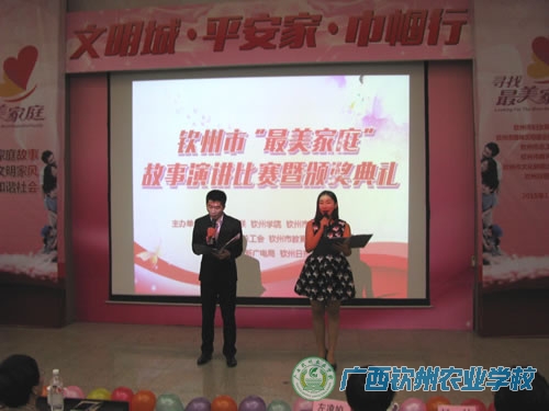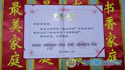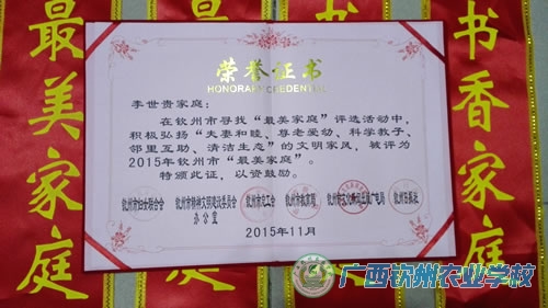 11月26日,钦州市“最美家庭”颁奖典礼在钦州学院举行,我校教师李世贵、卢德艳家庭成为全市20户同时获“最美家庭”、“书香家庭”两项荣誉的家庭之一。