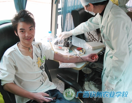2008年1月5日上午九点,为培养和增强青年学生的感恩意识,发扬人道、博爱、奉献的风范,我校团委与钦州市血站联合在办公楼前开展无偿献血活动,共有45名适龄团员青年加入无偿献血行列,献血总量九千多毫升。
