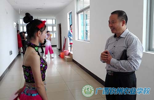 伍国樑校长出席钦州市第四届中等职业学校技能比赛开幕式,并到合浦师范学校为参加学前教育技能比赛的师生鼓劲,覃效敏副校长到北部湾职业技术学校为参加汽车项目竞赛的学生加油。