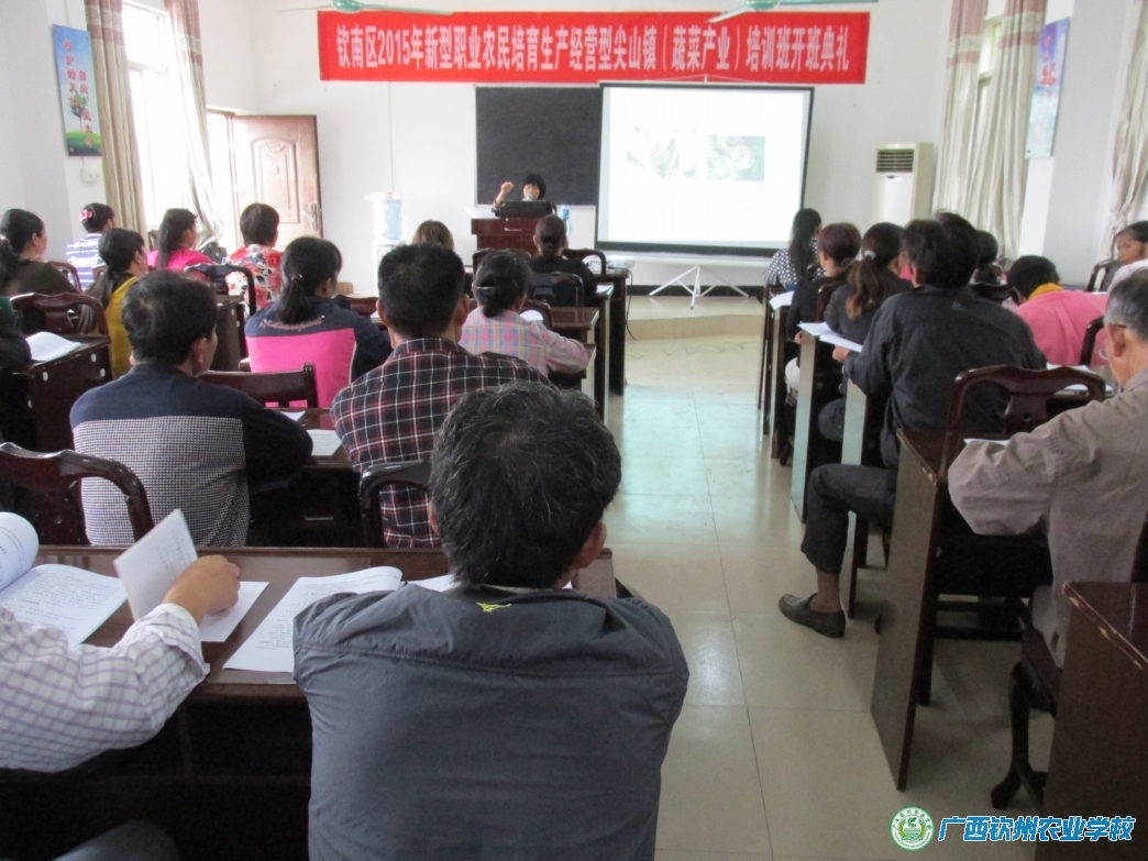 在钦南区农业局的精心挑选和组织下,尖山镇的46名种养大户和专业合作社骨干集中到鑫农农业生产观光生态示范园的培训教室进行培训,我校组织我校理论知识深厚、实践经验丰富的高级讲师授课,并聘请了钦南区农业局的专家在新型职业农民培训项目方面进行了授课。期间,还组织学员到东兴市广源农业开发有限公司实地考察,学习先进的栽培技术。最后,组织学员进行考核。