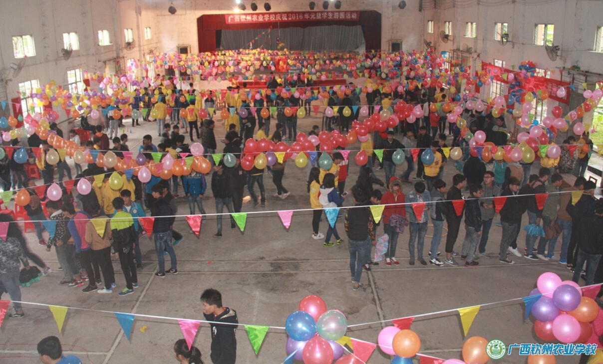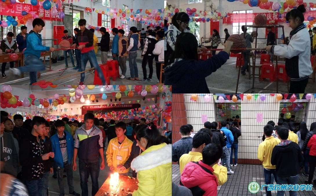 12月30日下午,我校在大礼堂举行2016年“庆元旦”学生游园活动。学校领导覃效敏副校长、工会陆武昌主席出席活动,全校各班学生参加了活动。