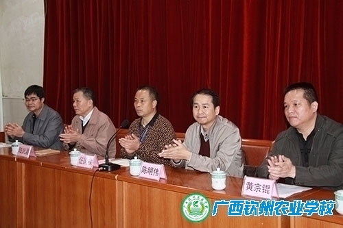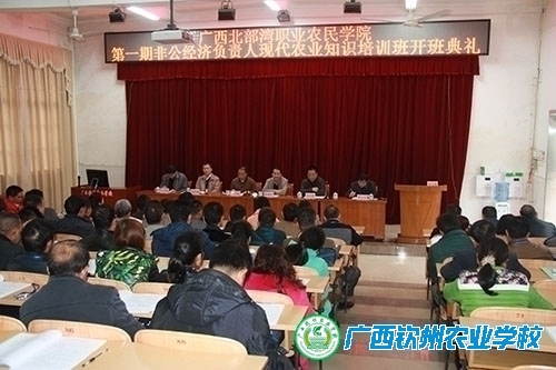 1月12日上午,广西北部湾职业农民学院第一期培训班—钦州市非公有经济组织负责人现代农业技术知识培训班在我校举行开班典礼。自治区农业厅科教处处长、广西北部湾职业农民学院管理委员会秘书长陈明伟,我校校长、广西北部湾职业农民学院院长伍国樑,钦州市农业局副局长、广西北部湾职业农民学院副院长黄宗锟等领导出席典礼。100名培训学员参加典礼。