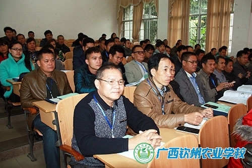 1月12日上午,广西北部湾职业农民学院第一期培训班在我校开班,自治区农业厅科教处处长、广西北部湾职业农民学院管理委员会秘书长陈明伟为钦州市非公经济组织负责人现代农业技术知识培训班作首场培训讲座。