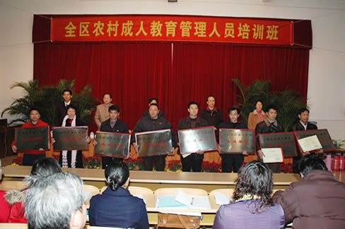 在圆满完成承办全区农村成教管理人员首期培训班的工作任务后,我校在1月21日到25日又顺利地完成了承办了全区农村成教管理人员第二期培训班的工作任务。本期培训班有来自全区各市县乡镇成人教育管理干部近90人参加,自治区农业厅科教处胡德泉处长、教育厅李俊才调研员、钦州市教育局和我校有关领导参加了开班仪式。在仪式上,自治区教育厅职成处对获得全国农村成人职业教育先进学校的8个职业学校进行了表彰。