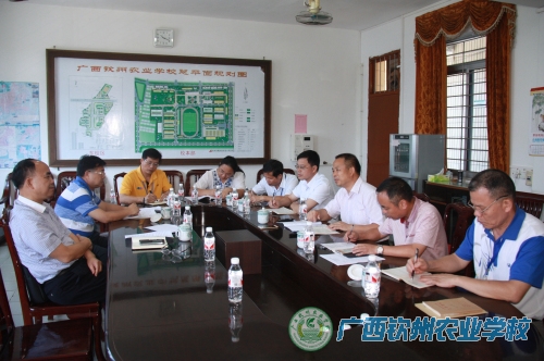 我校伍国樑校长向温副厅长汇报该项目进展情况、遇到的困难和需要解决的问题。钦州市滨海新城管委曾大立副主任汇报了项目土地征拆情况。温副厅长听了情况汇报后,对我校前期所做工作表示肯定。同时寄语我校,对项目建设要树立信心,广西海洋农业职业技术学院专业设置要紧跟时代发展的步伐,要明确项目资金筹措渠道。温副厅长表示,农业厅将进一步与教育厅加紧沟通,尽快促成项目的立项。