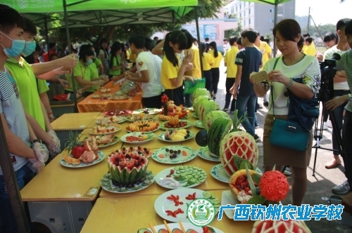 “欢乐农庄杯”广西钦州农业学校第十四届学生技能竞赛是2016年广西职业教育活动周钦州农业学校职教体验活动的重要内容。竞赛分为种植、园林、养殖、加工、汽修、学前教育、金融、计算机、电子9个专业类别,共有果蔬嫁接、遥控飞机喷药、插花艺术、鱼类解剖、冰糖葫芦制作、汽车底盘检查维护、钢琴演奏、票比清点、趣味电子电路制作等44个竞赛项目。竞赛项目丰富多彩、专业性强,具有很好的科普性,吸引了参加全国科技活动周钦州市科普活动开幕式的领导嘉宾、有关单位领导和前来参观的中学生驻足观看。参赛选手全神贯注、认真投入,虽然烈日当头,但丝毫不影响竞赛的质量,选手们追求更高、更好竞赛效果的竞技精神深深地打动了观众。整个竞赛持续到当天下午。
