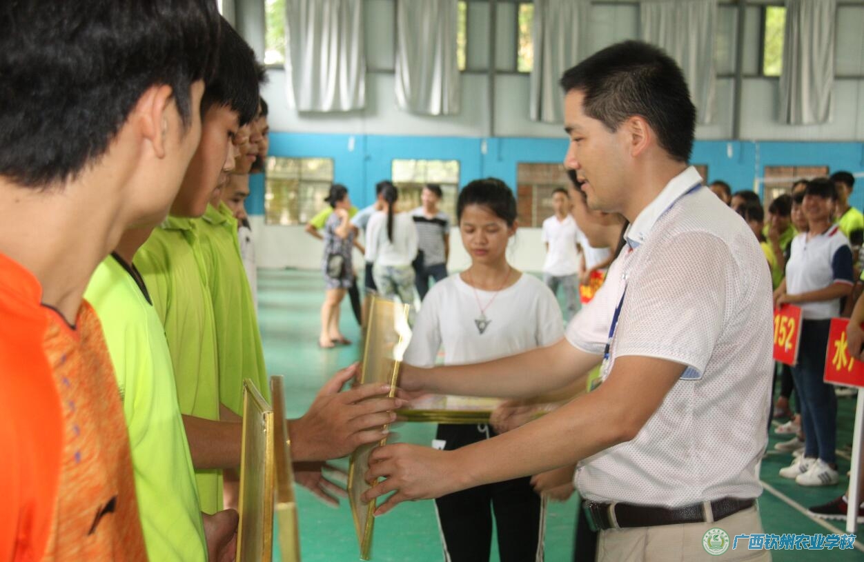 6月15日下午,我校在综合球馆举行2016年春季学期学生气排球比赛闭幕式暨颁奖仪式,学校工会陆武昌主席出席仪式并讲话。仪式由学生科唐伟尤副科长主持,学生科和体育组全体老师、全体班主任及各班运动员代表参加了仪式。