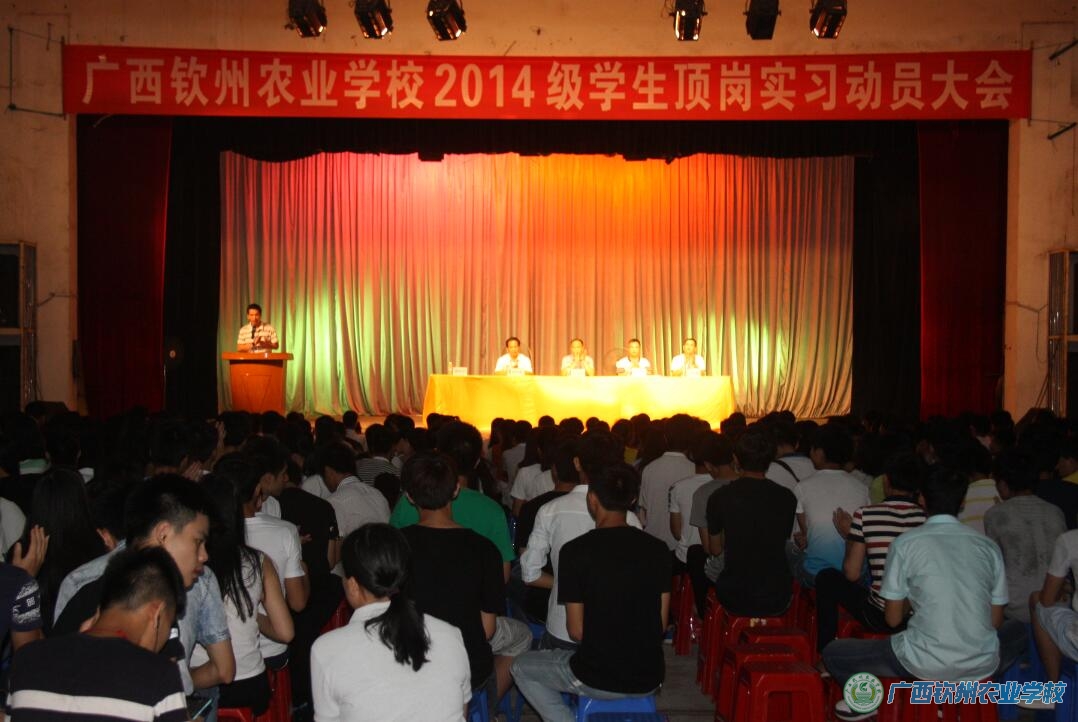 为了贯彻落实教育部《中等职业学校学生顶岗实习管理规定》文件精神,做好我校2014级学生顶岗实习工作,6月21日,我校在大礼堂召开2014级学生实习顶岗实习动员大会,伍国樑校长出席大会并作动员讲话。学生科、招就办、教务科等相关负责人及2014级全体班主任和学生参加了大会。大会明确了顶岗实习“三统一”(统一安排、统一管理、统一购买保险)的重要意义,强调了顶岗实习纪律及安全注意事项,并对顶岗实习工作做了具体部署。
