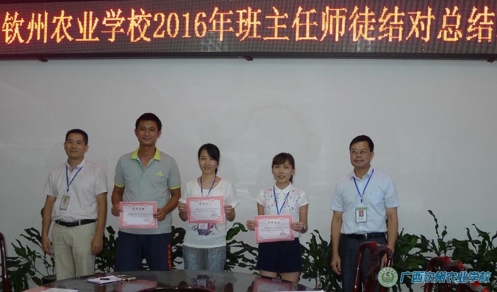 为全面提高年轻班主任的思想素质和业务水平,表彰新生力量,增强班主任队伍活力。6月29日下午,我校在第一会议室召开了2016年班主任师徒结对总结表彰会。覃效敏副校长出席会议并为见习班主任颁发了荣誉证书。会议首先由2016年结对师徒分别作总结。最后,覃副校长作总结讲话。