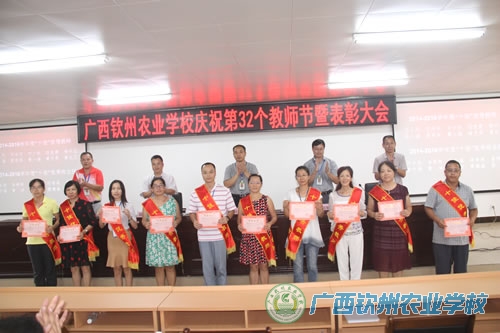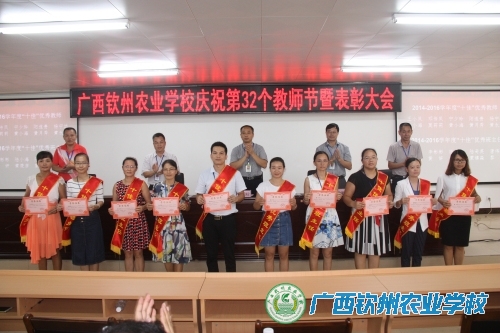 覃效敏副校长宣读了自治区农业厅及学校致全体教职工的慰问信;陈明强副校长宣读了《广西钦州农业学校关于表彰2014-2016学年度“十佳”优秀教师、“十佳”优秀班主任的决定》、《广西钦州农业学校关于表彰2015-2016学年度先进教育工作者的决定》。会上,对获得“十佳”优秀教师、“十佳”优秀班主任、先进教育工作者称号的教师进行了表彰。