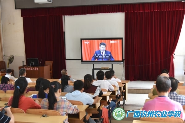 今天上午,我校领导班子成员、部分教职工在电化教室,收看了纪念红军长征胜利80周年大会直播。