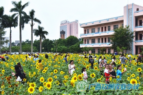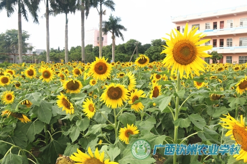 夏天播下的向日葵种子,深秋收获一片金黄色的海洋。钦州农校校园内的万朵向日葵花,硕大的花朵、温暖的色彩成为了今秋钦农里最耀眼的光芒。