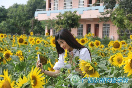 微风吹过,大片的向日葵随风摆动,远远看去呈现出一片金色的海洋,吸引着众多游人、摄影爱好者前来观赏、摄影,他们或手捧花盘闻香,或张开双臂拥抱,人和花相比姿容,花与人互相生辉,成为了钦农校园里一道亮丽的风景。