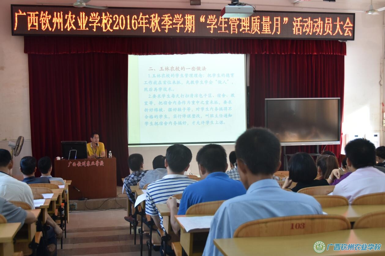 12月1日至12月31日,我校开展2016年秋季学期 “学生管理质量月”系列活动。本次活动主要是为了加强班级管理质量监控,进一步规范学生日常行为,体现“育人为本、德育为首”的理念,强化学生管理队伍工作质量。活动设立检查监督小组,每天巡查发现问题及时反馈和公布,督促整改,对检查发现违纪的学生,按规章制度从速从严进行纪律处分。重点检查整治仪容仪表行为、学生宿舍内务、其他严重违纪行为等。