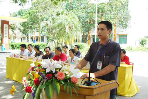 开展技能竞赛活动是激发同学们学技术、学技能的有效手段;目的是以竞赛促训练。希望老师和同学们以这次竞赛为契机,加强专业技能的训练,提高能力,增强综合竞争力。