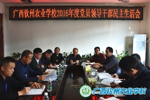 12月22日下午,我校召开了2016年领导干部民主生活会。校领导伍国樑、覃效敏、邓喜和、陈明强、陆武昌参加了会议。自治区农业厅考核一组组长、厅人事处副处长张洪、考核组成员檀志全到会指导。学校党委委员、党员代表、离退休党员代表、群众代表,我校的市政协委员及相关部门负责同志列席会议。