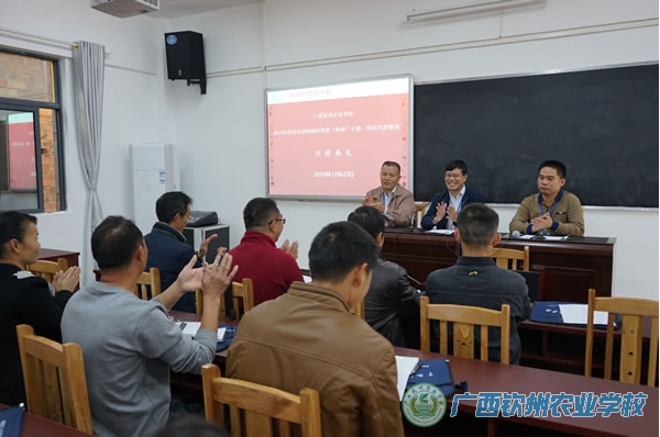 2016年12月12日至26日,我校结对帮扶村—靖西市禄峒镇怀利村“两委”干部、村民代表一行12人在驻村第一书记的带领下到我校进行为期5天的学习培训。