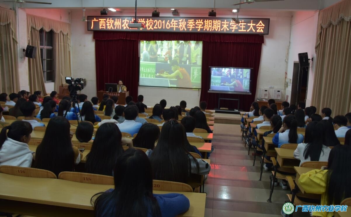 会上先是观看了一学期来的学生活动视频。充实而忙碌的2016年秋季学期学习生活给同学们留下精彩瞬间与难忘的回忆。学生科邓业斌科长总结本学期取得的工作成效、布置期末工作及假期安全注意事项。