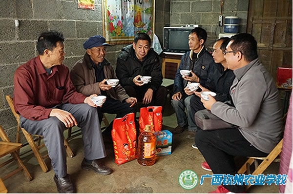 为贯彻落实自治区党委、政府和自治区农业厅党组关于精准扶贫的要求,将扶贫工作做好做实,2017年1月19日至20日,学校副校长陈明强带着学校党委行政的嘱托和全校教职工的心意,率队赴我校扶贫点——靖西市禄峒镇怀利村开展春节慰问活动,亲切看望慰问贫困户、驻贫困村第一书记和村干部。党办相关人员参加了陪同慰问。