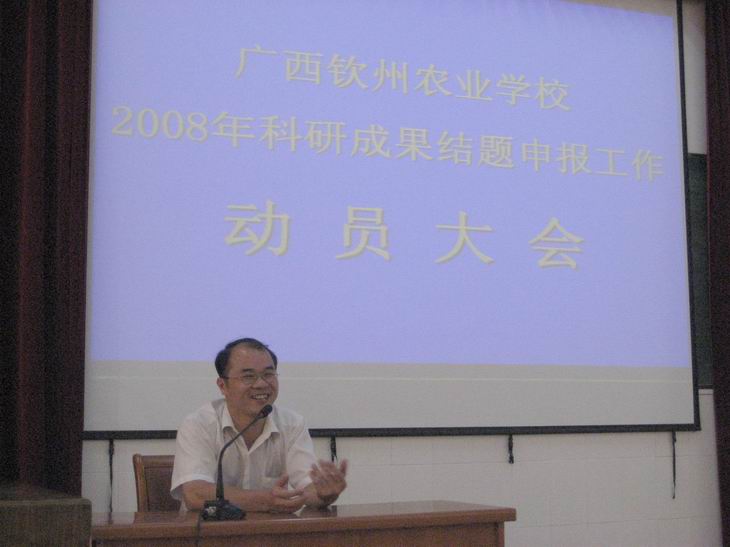 目前,我校已立项并经过二年以上科学研究的项目(或课题)共有28项,今年是申报科研成果的年度,为切实做好这项工作,我校于7月9日下午,在电化教室召开了所有课题主持人参加的“2008年科研成果申报动员大会”,会议由伍国樑副校长主持,刘小梅、王明总老师分别结合自己的成功经验,就科研成果申报材料的撰写、佐证材料的收集、整理等申报工作做了较为详细的经验介绍,伍副校长也结合自身经历谈了体会,并就2008年科研成果申报工作进行了具体部署。最后由刘波校长讲话,他点明了今年开展科研成果申报的必要性与紧迫性,要求所有课题主持人今年内必须完成一项以上的科研成果申报,同时力争多项,并宣布了一些新的激励措施,鼓励各个课题主持人克服困难,努力完成科研成果申报工作,为校争取荣誉,为学校的科研建设与发展做出新的贡献。