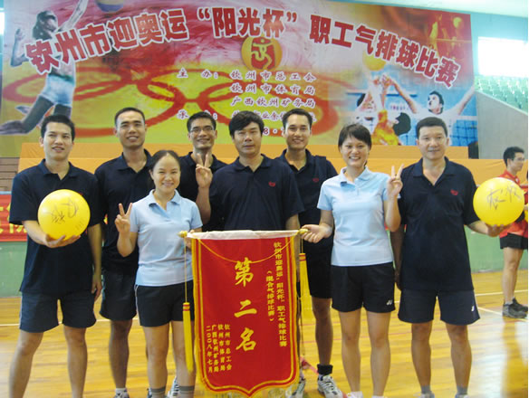 2008年7月26日——29日钦州市迎奥运“阳光杯”职工气排球赛在钦州市体育馆举行,我校气排球队本着“为奥运增光,为奥运添彩”的目的,积极准备、认真参赛。经过四天的激烈争夺,我校气排球队获得了亚军,为学校争得了荣誉,也以实际行动迎接了即将举行的2008年北京奥运会。