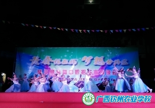 2017年6月1日晚,我校覃效敏副校长带领师生一行40人,到钦北区那蒙中学参加“青春继飞扬 梦想分外蓝” 毕业晚会暨中职招生宣传晚会。学前教育专业和武术社的同学参加了演出,他们优美的舞姿和精采的武术,赢得场下师生们的连声喝彩和阵阵掌声。