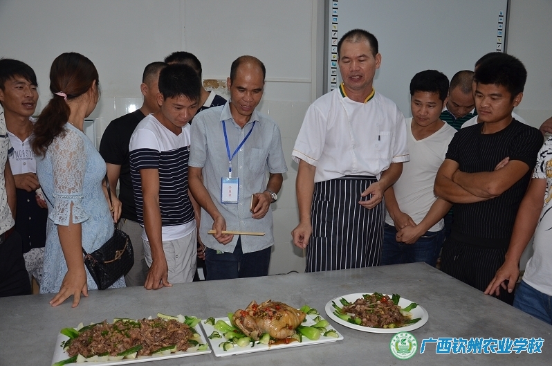 本次培训是从6月5日开班的,来自柳州市柳江区穿山镇45名移民集中到校进行了为期15天的培训。我校组织专业理论深厚、实践经验丰富的高级讲师对学员进行授课,培训班主要课程有社交礼仪、热菜烹饪、冷菜制作、刀法的掌握等课程,培训结束后由钦州市技能鉴定中心进行职业技能鉴定,所有学员均参加了理论考试和技能考核。共培训期间还组织学员到东兴市参观考察。