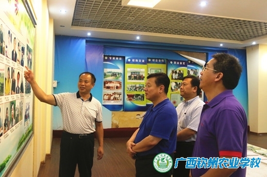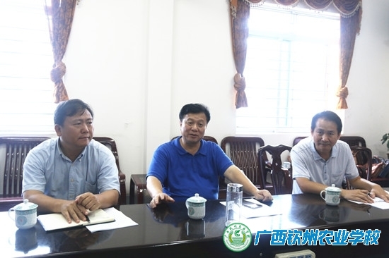 7月10日下午,自治区农业厅党组书记、厅长刘俊率厅办公室、科教处、植保总站、土壤肥料工作站等处室负责人到我校开展办学情况调研,王凯学总农艺师、钦州市副市长李从佳陪同调研。