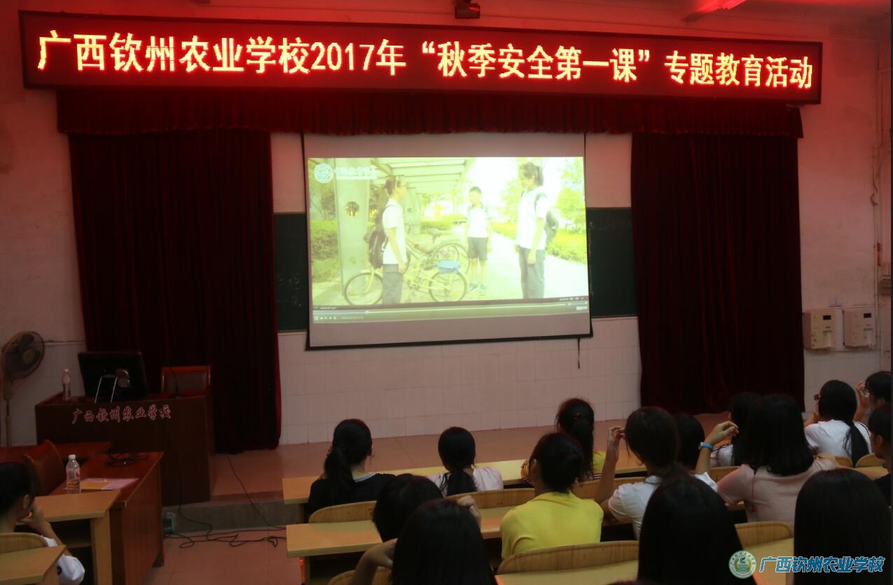 根据自治区教育厅相关文件精神,9月3日晚,我校学生科组织全校班级开展2017年“秋季安全第一课”活动,给全校学生上了一堂“开学安全教育第一课”,加强学生安全教育。全校统一开展活动后,各班还进行安全教育主题班会。
